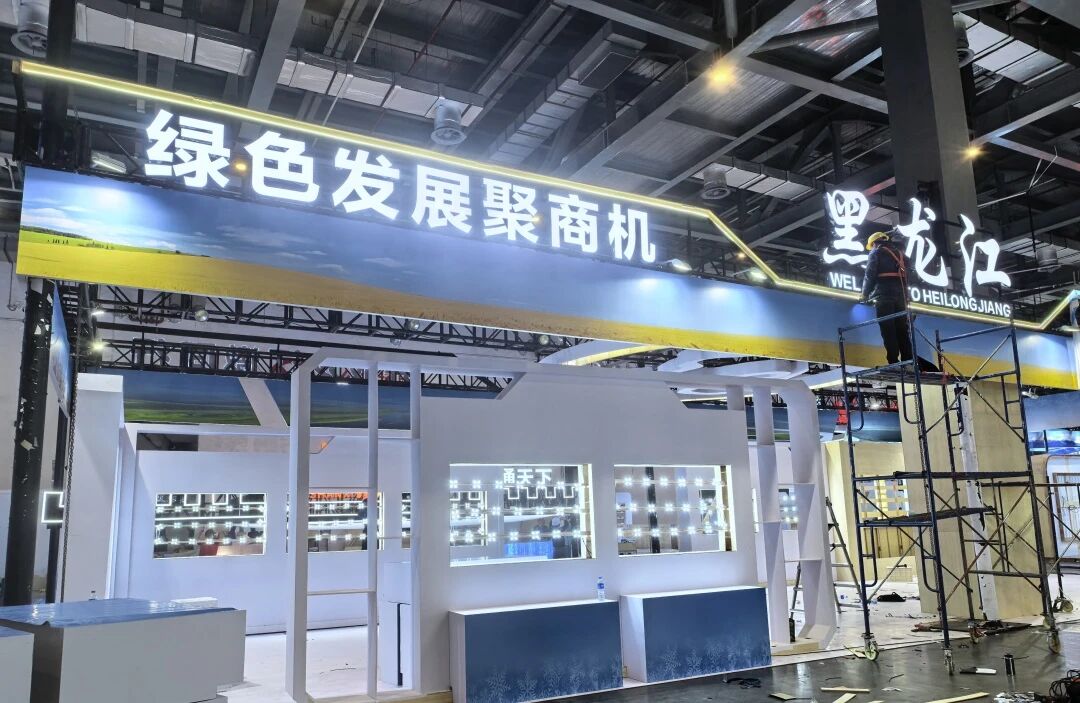 此刻,展馆内灯火通明,黑龙江展区造型已初见雏形,工人们正进行最后的打磨与装饰。明日,这里将完成所有布展,静待四方宾客。