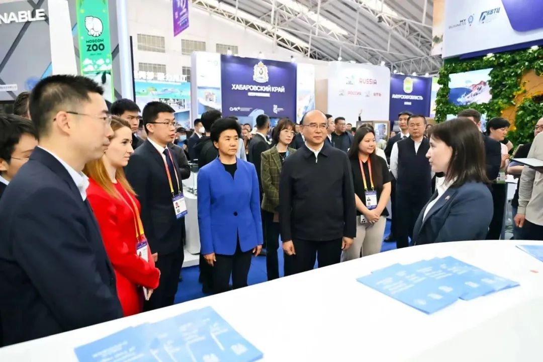 许勤、梁惠玲指出,中俄博览会是中俄两国间层次最高、规模最大的综合性展会,已成为推动中俄经贸合作的重要平台。全省各地各部门要全面贯彻习近平总书记贺信精神,认真落实两国元首重要共识和《联合声明》,充分发挥中俄博览会重要平台作用,更好服务构建中俄互惠互利合作新格局。要以高水平展会促进经贸交流,做好展会“后半篇”文章,深化各界务实合作,推动洽谈成果转化,持续扩大贸易规模、优化贸易结构、提升贸易层级。要以高水平展会助力产业合作,坚持展业融合、以展兴业,推进产业、企业、项目深度对接,促进前沿技术和创新成果落地,服务构建“4567”现代化产业体系。要以高水平展会深化人文交往,拓展展会溢出效应,促进科教、文化、体育、旅游等各领域交流,完善地方间友好合作和互动机制,增进了解互信,巩固传统友谊。